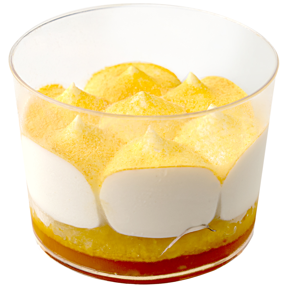Яркий десерт с экзотическими фруктами. Джем на основе пюре из манго и маракуйя. Бисквит пропитанный сиропом и нежный сливочный крем.